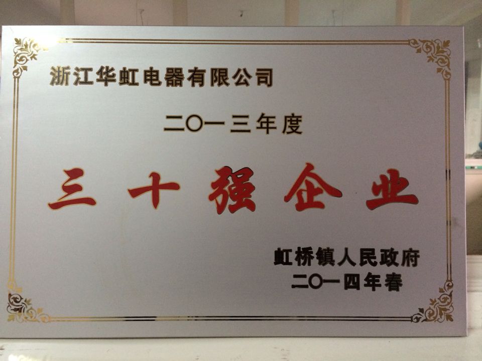 荣获虹桥镇人民政府二〇一三年度三十强企业