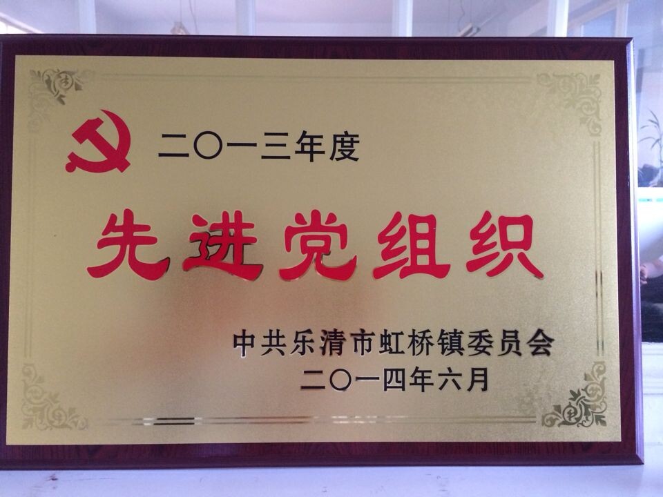 荣获中共乐清虹桥镇委员会二〇一三年度先进党组织