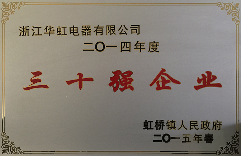 荣获虹桥镇人民政府二〇一四年度三十强企业